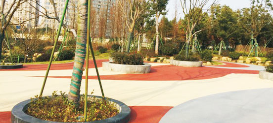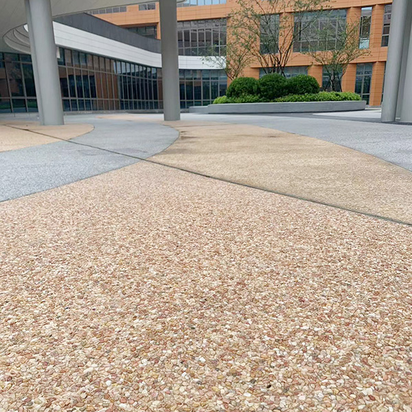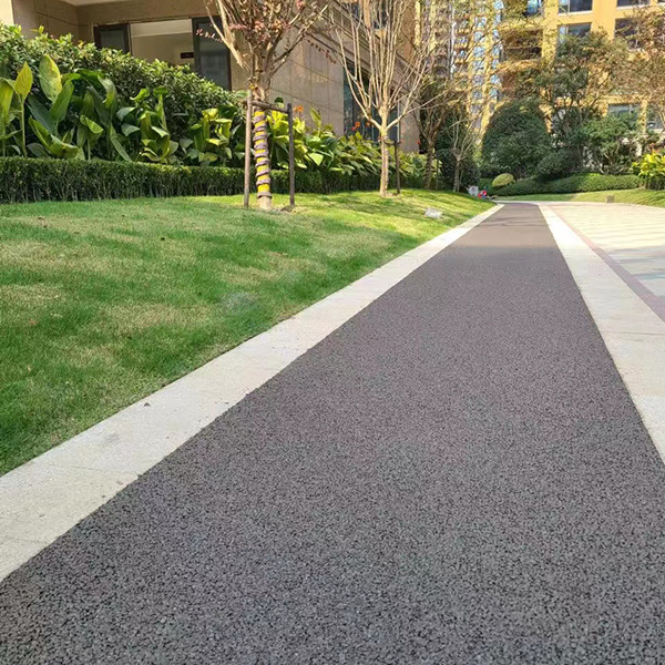 不專的業施工隊伍,施工次序錯亂,沒有專業施工設備及養護,經常會產生路面脫石子(起沙)情況。 廣霸透水混凝土,擁有自主研發的膠結料,同時多年的施工經驗總結了科學合理的配比方案(骨料、水泥、膠結料、顏料、水等),確保了施工路面具有良好的美觀性、抗壓性、透水性效果。
